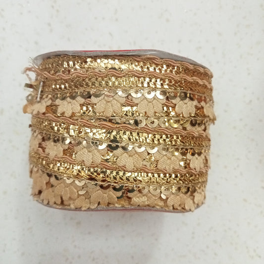 Moti Lace (7.5 - 8 Meter) Dull Gold Color Beads
