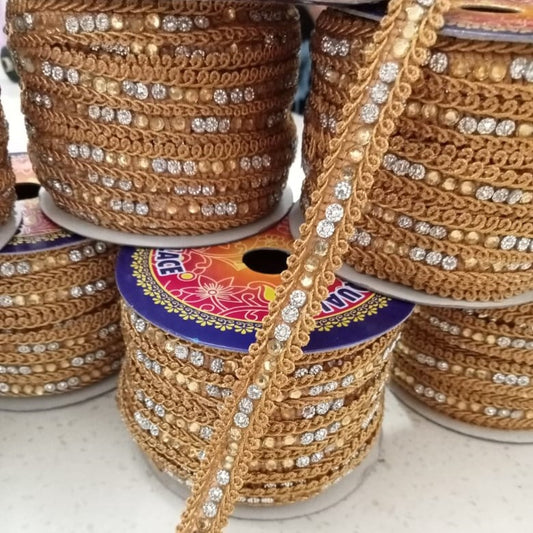 Lace 9 Meter (1 Roll) Gold Color with Stones
