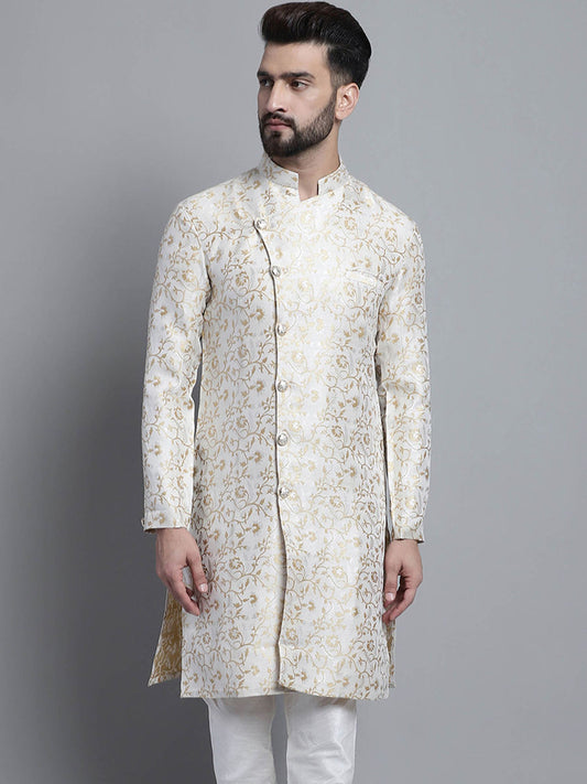SHERWANI (Size M - 38) Men Designer White Golden (Set of 2) for party / celebration / wedding / Indian traditional wear